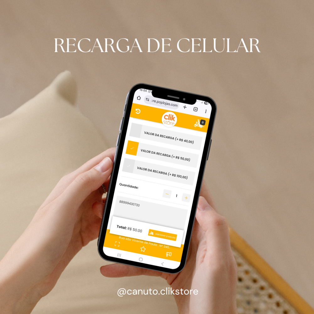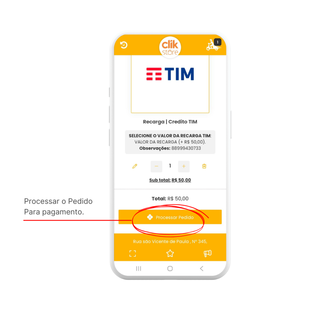 Escolha o valor da recarga e insira o número do seu telefone no campo de observação.