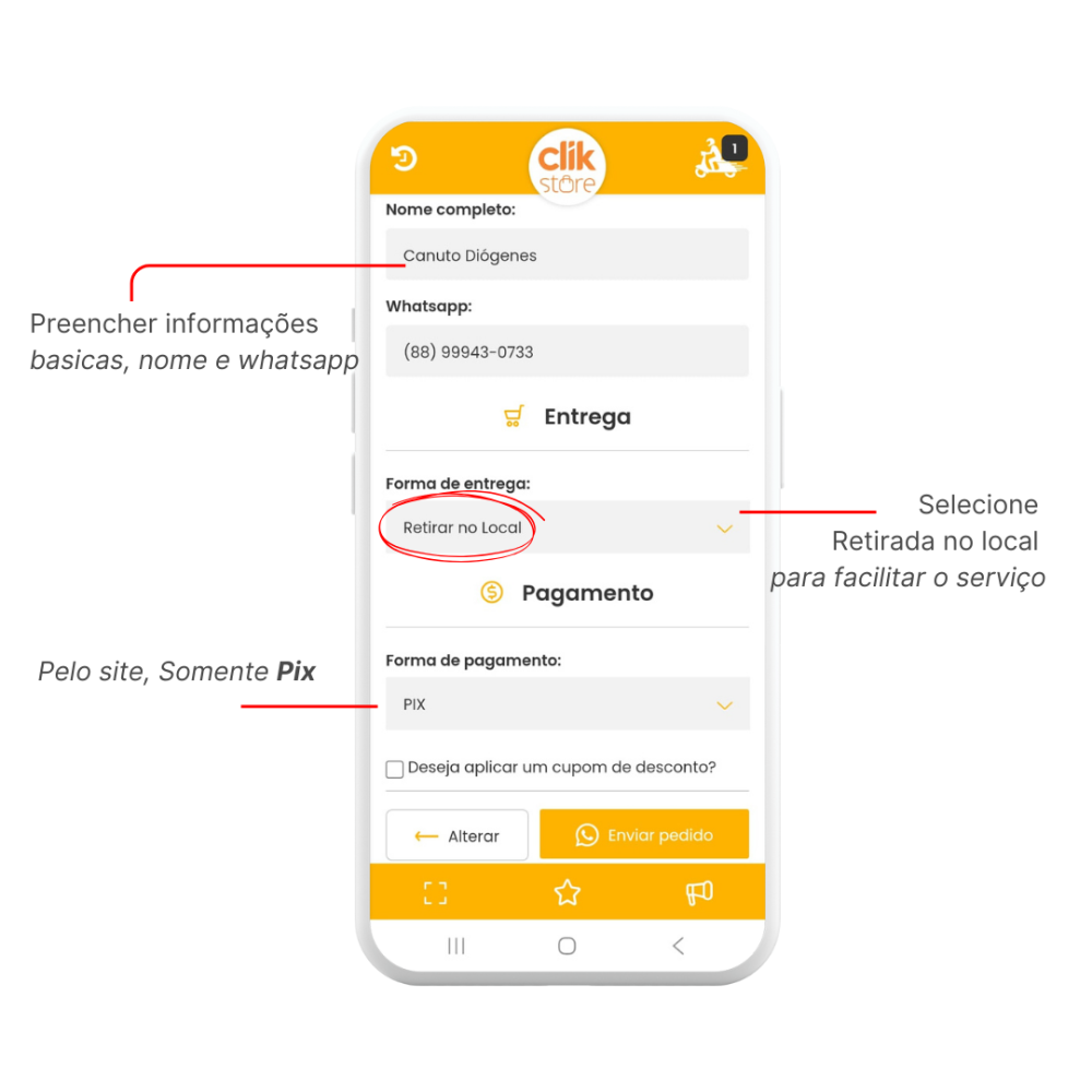 Não esqueça de digitar o número do celular que deseja recarregar no campo de observações.